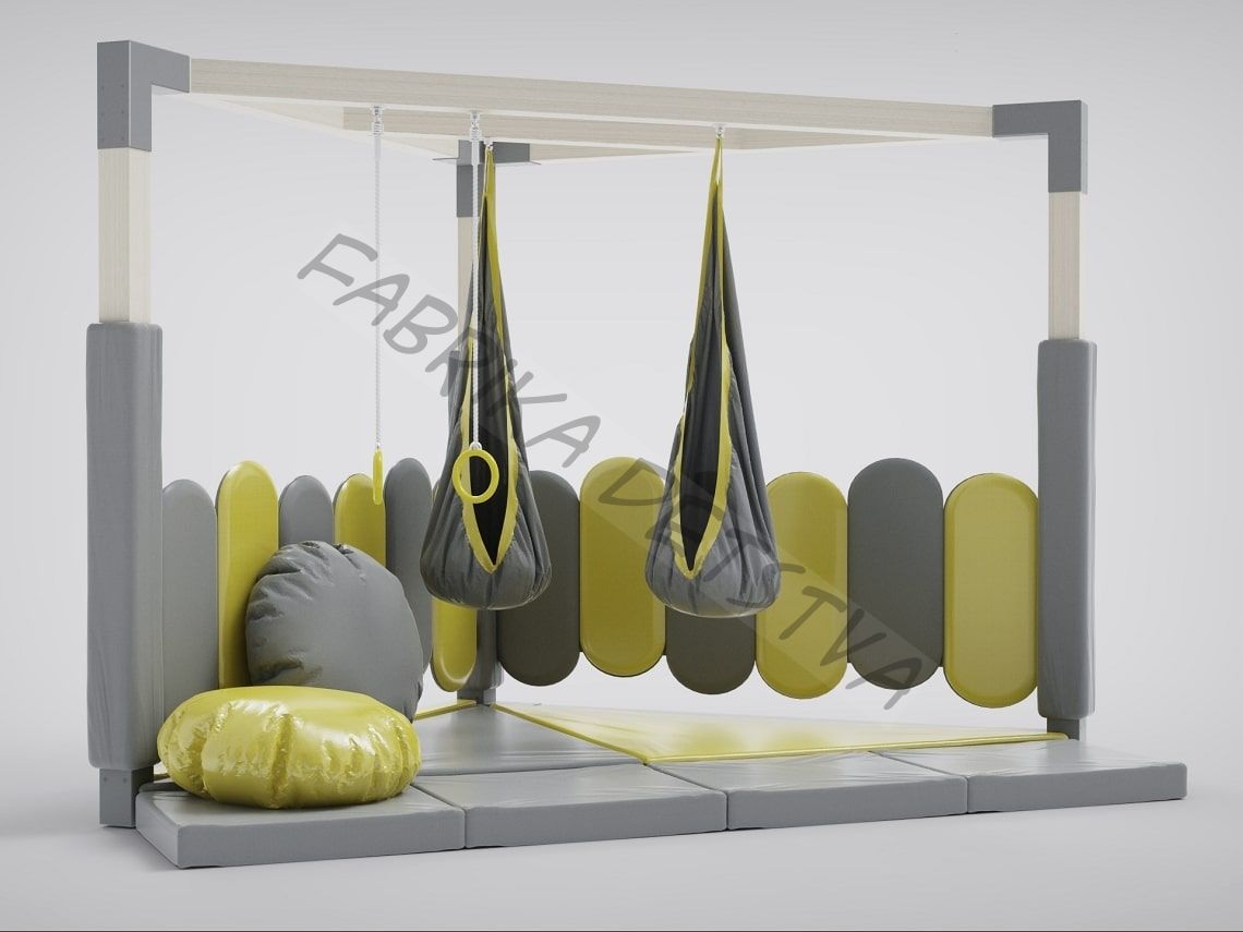 Комплект спортивного игрового оборудования для детей с нарушениями обработки сенсорной информации от органов чувств (нарушениями сенсомоторной интеграции). Занятия с комплексом помогают исправлять дисфункции проприоцептивной, вестибулярной и тактильной чувствительности у детей. Подходит как для работы коррекционных педагогов и реабилитологов, так и для общего физического развития детей.