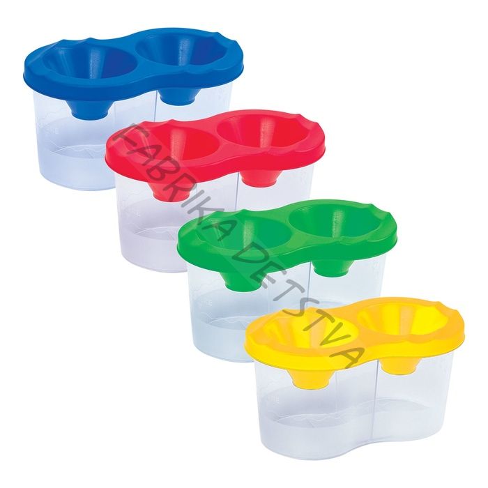 Стакан - непроливайка для рисования двойной Calligrata, 150 мл x2, с держателем для кистей, МИКС