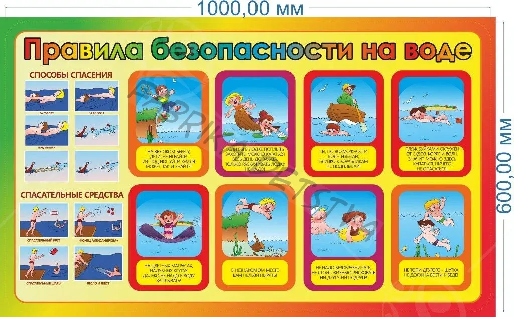 Стенд "Правила безопасности на воде" выполнен из ПВХ с нанесением яркого, информативного изображения. Выполнен в размер: 0,6м - высота, 1м ширина. Яркие картинки и крупный текст помогут детям изучить важные правила поведения!