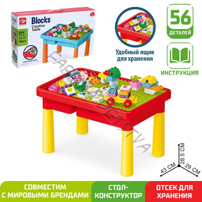 Стол с конструктором и отсеком для хранения, 56 деталей