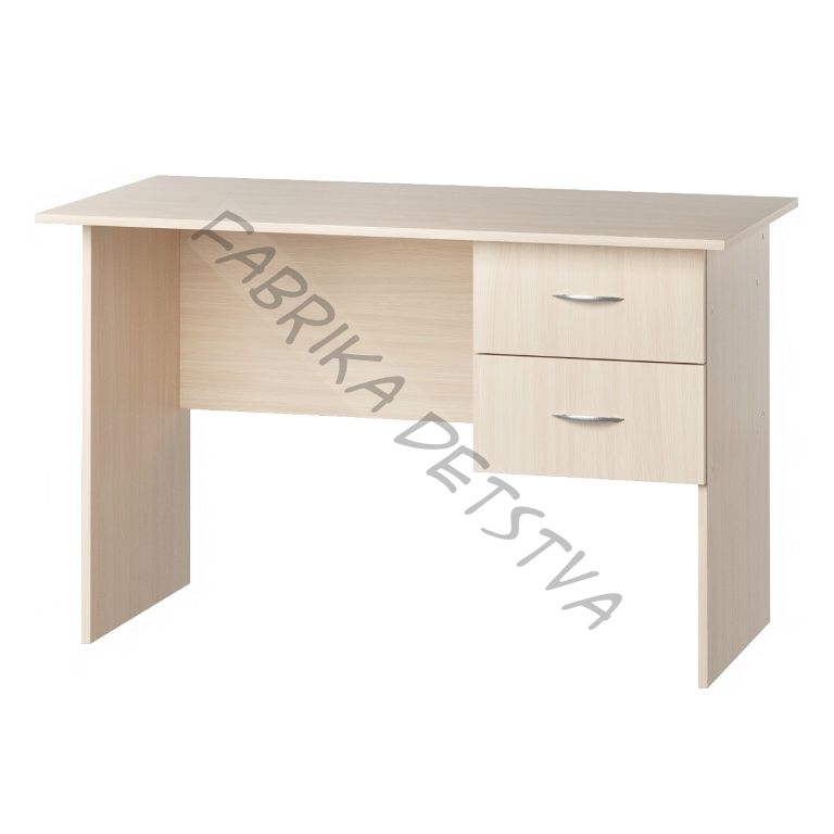 Стол имеет тумбу с двумя выдвижными ящиками. Углы столешницы скруглены.