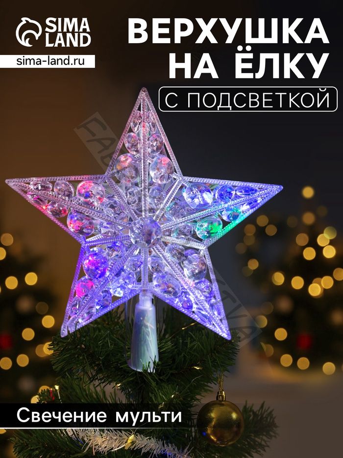 Светодиодная верхушка на ёлку «Звезда белая», 22 см, 15 LED, 220 В, свечение мульти