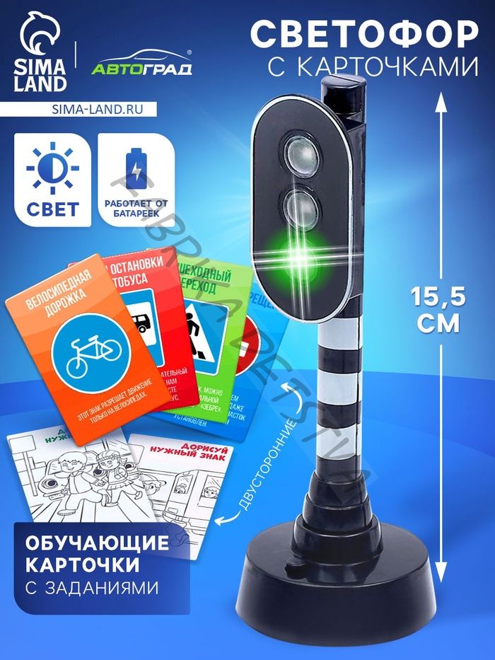 Светофор детский «Город», обучающие карточки, световые эффекты, на батарейках