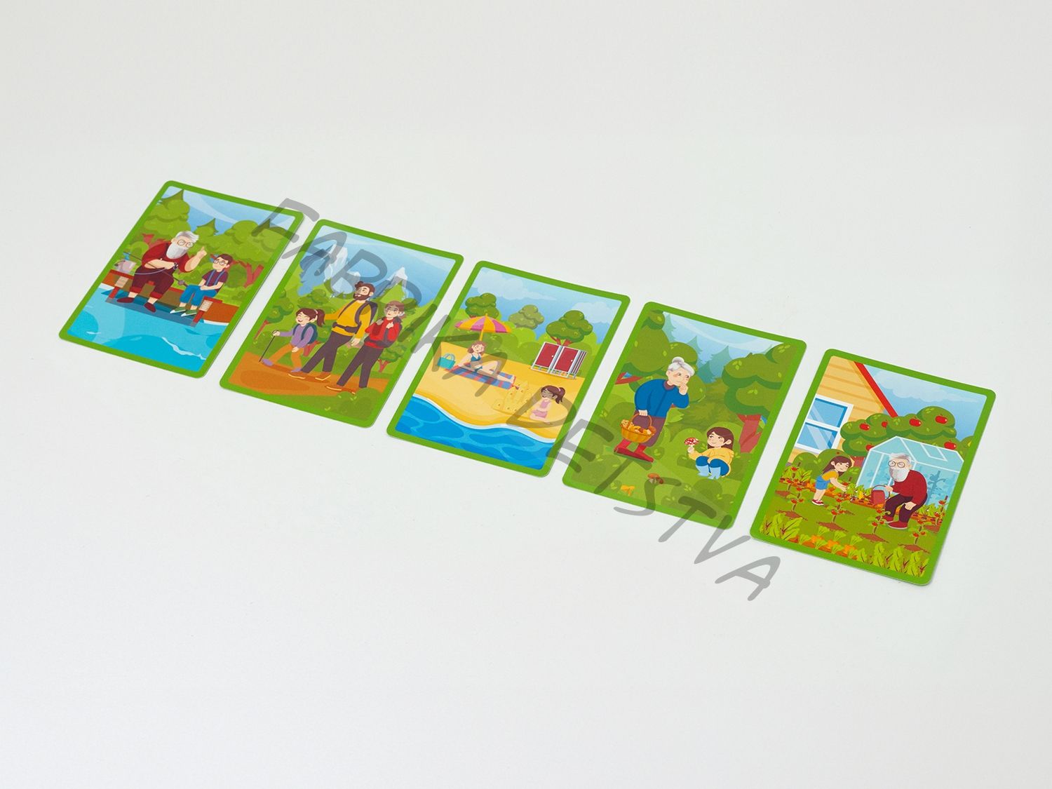 - Комплект игровых карточек для сюжетно-ролевой игры, по 5 карточек на локацию. Рубашка карточки описывает основную идею игры, а оборот – основные этапы развития игры.