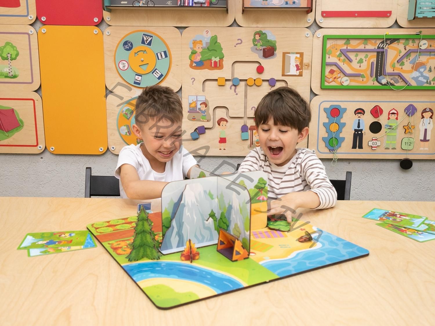 Все элементы изготовлены из высококачественных экологичных материалов, соответствующих стандартам качества и безопасности. Иллюстрации выполнены с помощью принтерной печати и покрыты защитным прозрачным лаком, он устойчив к воспламенению и защищает поверхность от стирания.