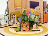 Например, в локации «Магазин» ребенку предлагается выбрать подарок имениннику. Предполагается, что он будет использовать фигурки с членами семьи, продавцом, прилавки, деньги и товары (спорт, рукоделие, электроника, канцтовары, сладости, игрушки, инструменты, косметика)