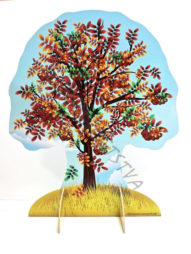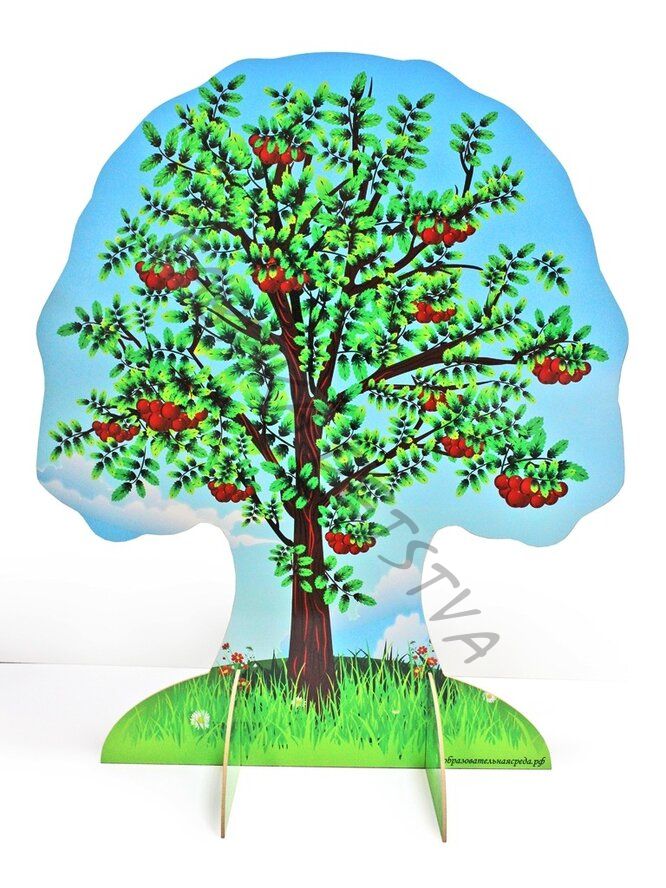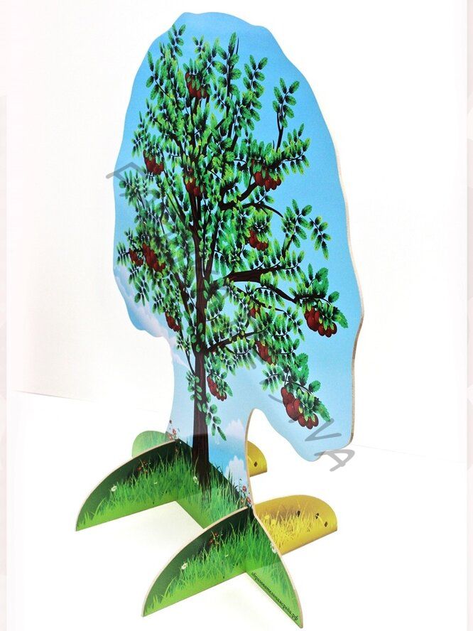 Театральная декорация "Рябина" (лето-осень) выполнена из МДФ, с нанесением полноцветного рисунка с двух сторон. Высота декорации 1,2м, ширина - 1м.