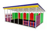 Обработка изделий: Кромки фанеры закруглены, отфрезерованы и шлифованы. Для покрытия изделий из фанеры используется водно-дисперсионная акриловая краска, создающая высококачественное атмосферостойкое и износостойкое покрытие. Краска нетоксична, пожаровзрывобезопасна. Изделия из металла имеют плавные радиусы закругления и тщательную обработку швов. Для покрытия изделий из стали используется экологически чистое, обладающее хорошей устойчивостью к старению в атмосферных условиях, стабильностью цвета антикоррозийное, выдерживающее широкий диапазон температур, двойное порошковое окрашивание. В целях безопасности все отдельно выступающие детали и резьбовые соединения закрыты пластиковыми колпачками и заглушками. Закладные детали опорных стоек – двойное порошковое окрашивание. |