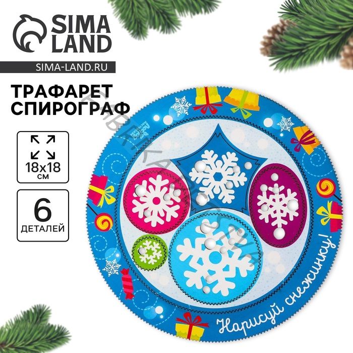 Трафарет спирограф «Новый год! Нарисуй снежинку», набор 6 деталей