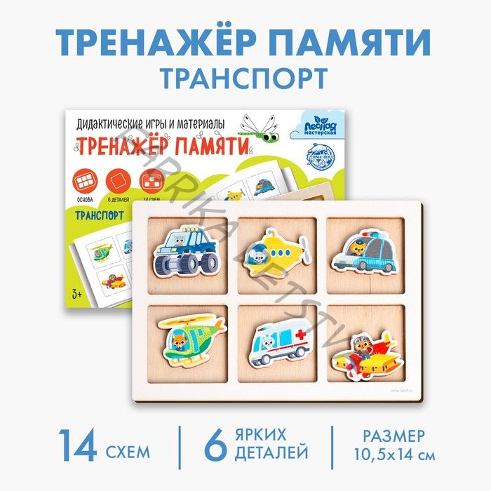 Тренажёр памяти «Транспорт», 6 деталей. 14 схем