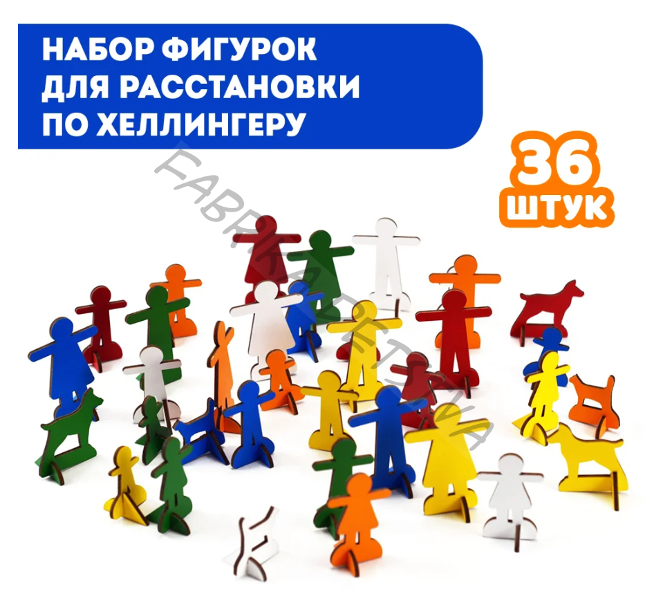 Можно использовать как набор фигурок для семейных расстановок по Хеллингеру, песочной терапии, полевой терапии, сказкотерапии, игровых техник – это набор деревянных цветных условных человечков, т.е. фигурок людей и домашних питомцев, которые имеют условные силуэты, без прорисовки деталей.