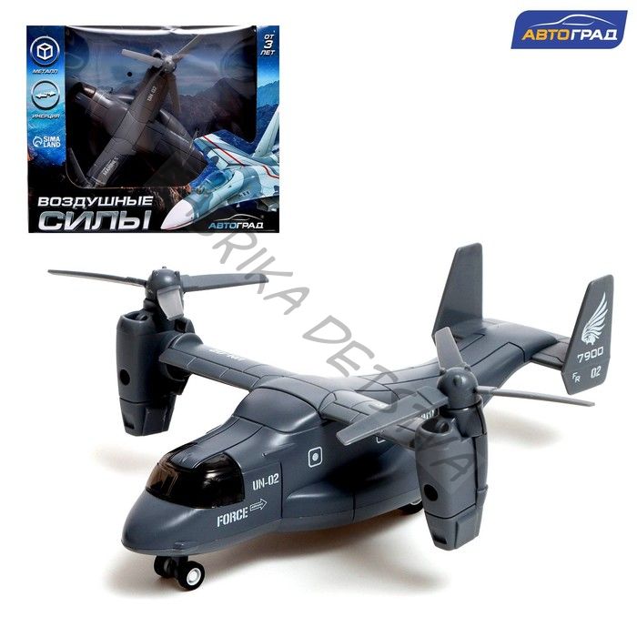 Вертолёт металлический «Воздушные силы», инерционный, световые и звуковые эффекты, цвет серый