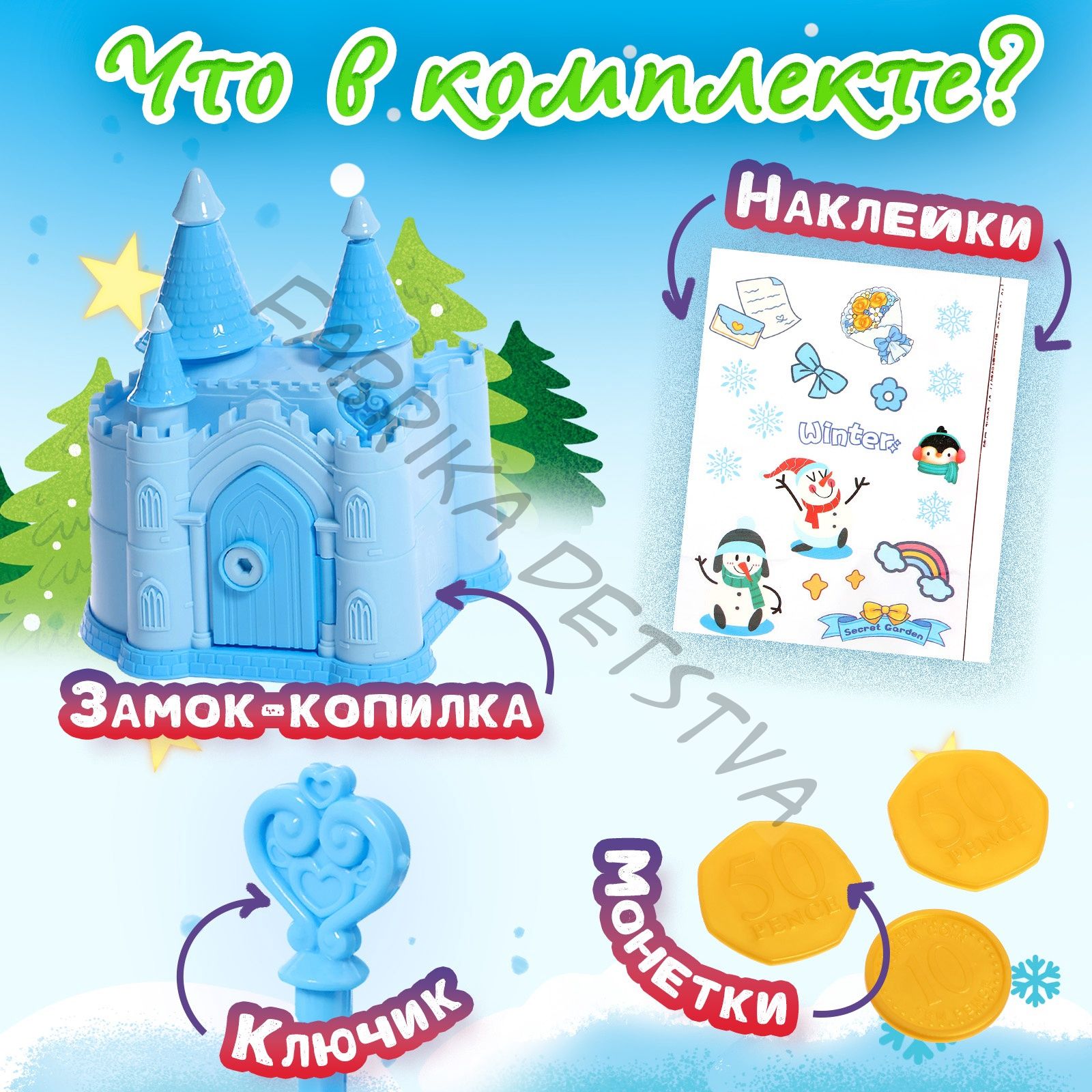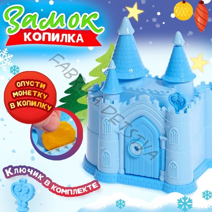 Замок-копилка «Ледяное царство» станет прекрасным дополнением для детских игр и развлечений. Он имеет привлекательный голубой цвет и изготовлен из прочного пластика, что делает его долговечным и устойчивым к повреждениям. Особенности Игрушечный замок совершенно безопасен для детей и не требует использования батареек В комплекте идут монетки и наклейки, что позволяет детям разыгрывать различные сценарии и придумывать увлекательные истории Для открытия замка используется ключик, входящий в комплект — отличная возможность научить ребёнка бережному отношению к деньгам и накоплению Размер замка 17,6 x 13,5 x 10,7 см Замок-копилка «Ледяное царство» идеально подходит для подарка на день рождения или любой другой праздник. Он будет чудесным украшением детской комнаты и прекрасным спутником для игр и фантазий.