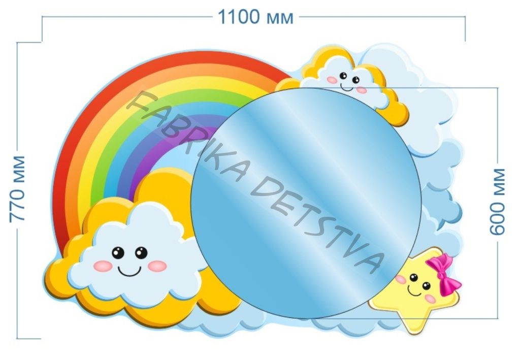 Зеркало "Радуга" изготовлено из МДФ 6мм. Размер 1,1*0,77м. Безопасное небьющееся зеркало.