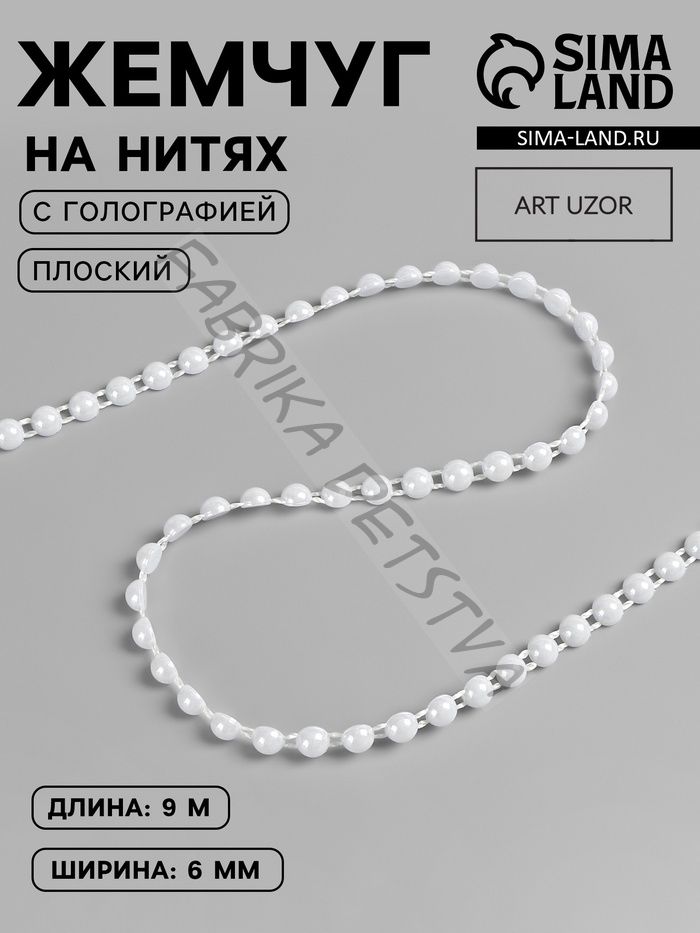 Жемчуг на нитях, с голографией, плоский, 6 мм, 9±1 м, белый