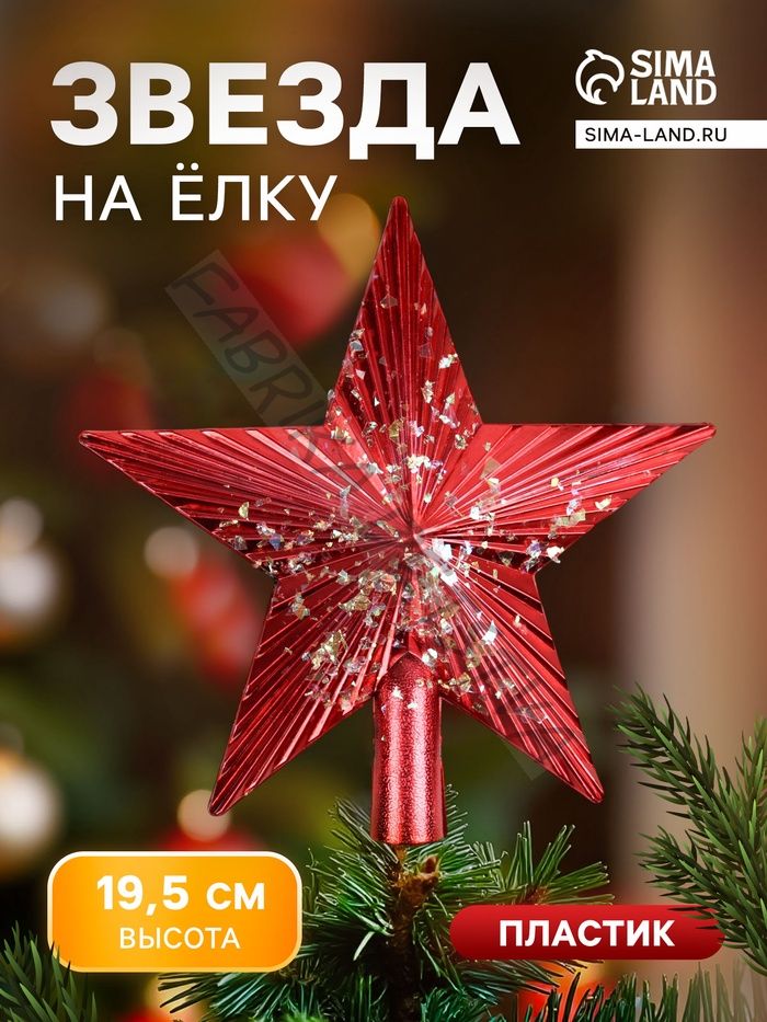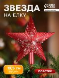 Звезда на ёлку (верхушка) «Звезда ребристая - сияние» 19.5x19.5 см, красный