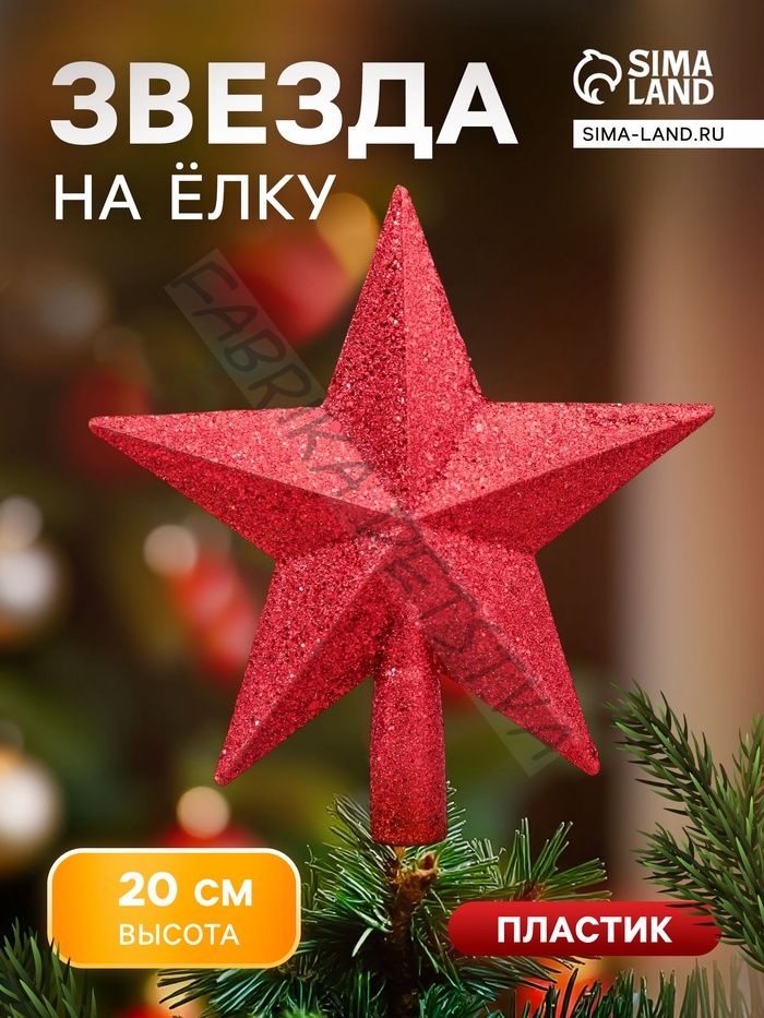 Звезда на ёлку (верхушка) блеск 18.5x20 см, красный