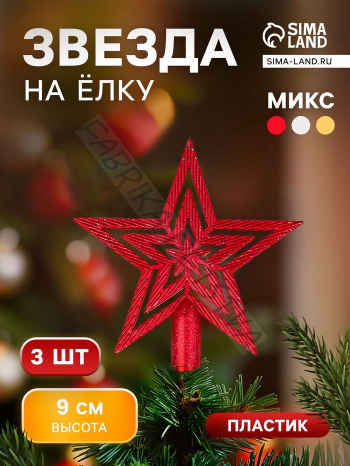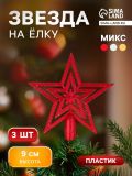 Звезда на ёлку (верхушка) набор 3 шт., текстурная, 9x9 см, МИКС