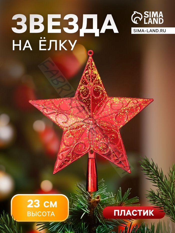 Звезда на ёлку (верхушка) завитки с блёстками, 20.5x23 см, жёлто-красный