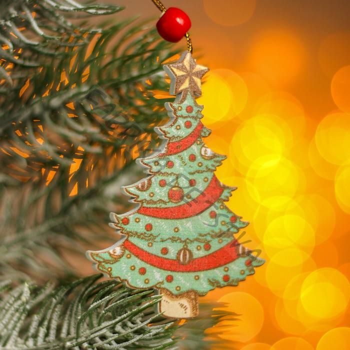 Елочная игрушка деревянная «Ёлка», 0.5x5.5x8 см