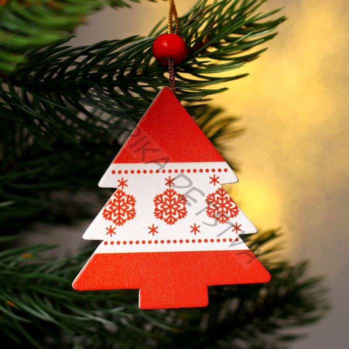 Елочная игрушка деревянная «Зимняя ель» МИКС