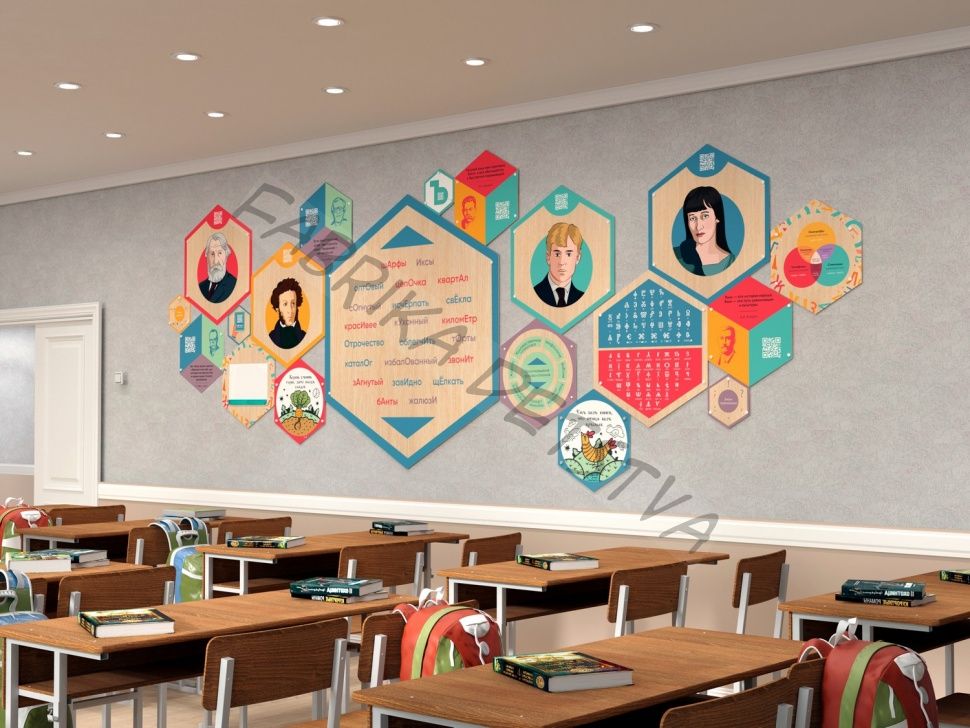 Стенды в образовательном учреждении могут украшать не только соответствующий кабинет, но и стены коридоров, комнат отдыха, холлов и актовых залов. Это полезно для закрепления знаний, так как мозг, постоянно натыкаясь на одну и ту же информацию, подсознательно запоминает её.