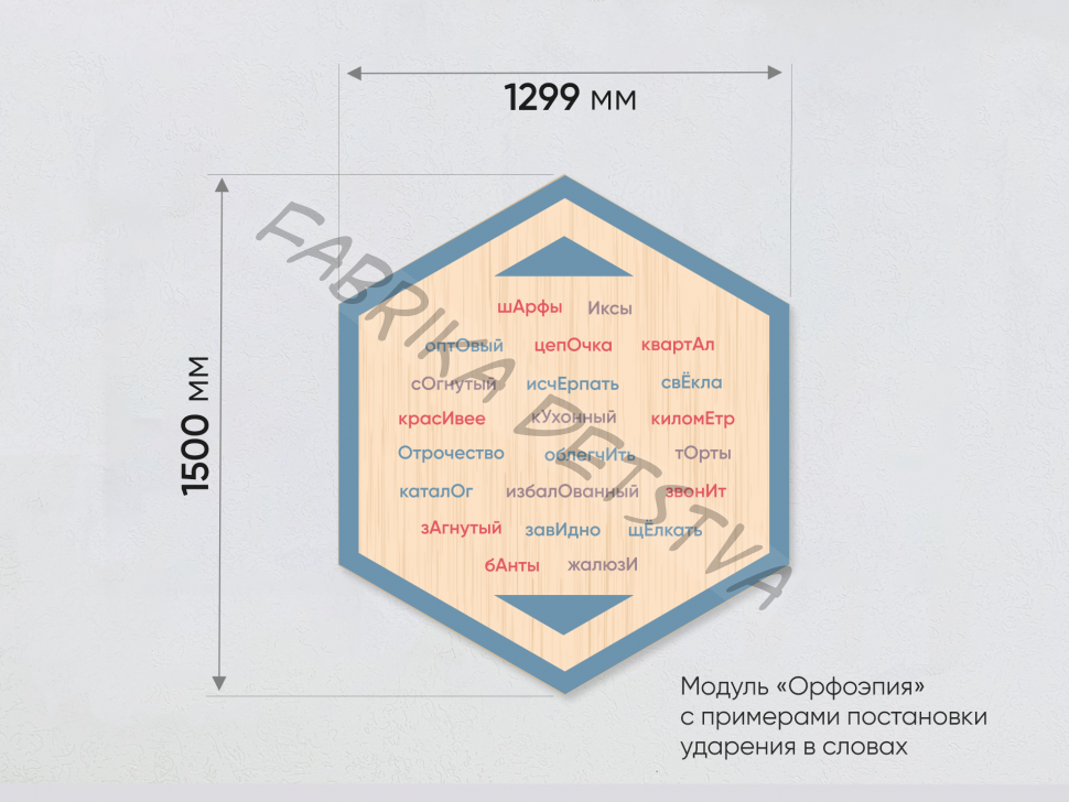 - Модуль «Орфоэпия» с примерами постановки ударения в словах (1500х1299 мм)